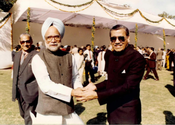 Justice Ahmadi receiving Dr Manmohan Singh at his son’s wedding reception, 1994