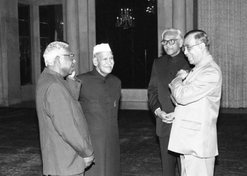 L-R –H R Bhardwaj, Justice Venkatchaliah, PV Narsimha Rao, Dr Shankar Dayal