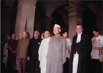 L-R – Vice President K R Narayanan, President Shankar Dayal Sharma, Justice Verma